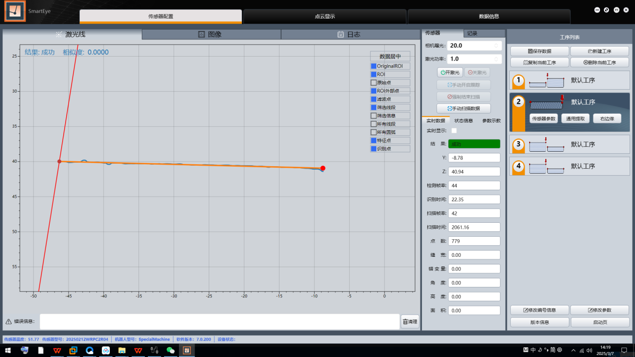 1. 确保传感器对准焊缝后,焊缝在视场中间;