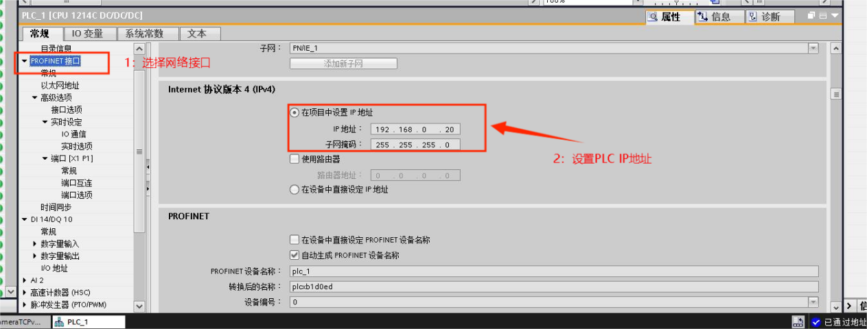 2. 必须保证PLC与工控机在同一网段;
