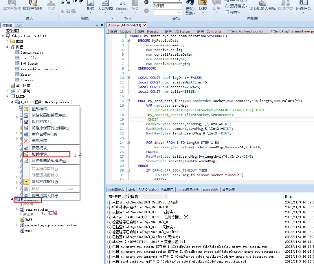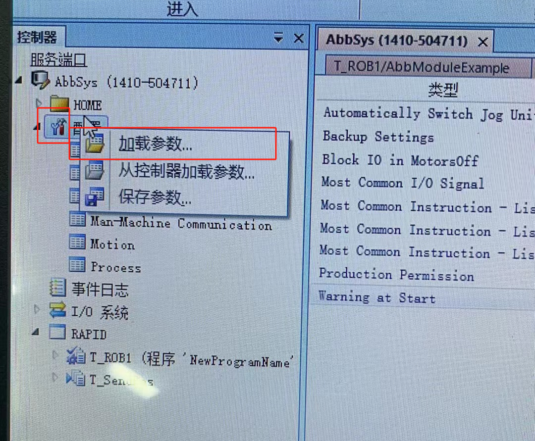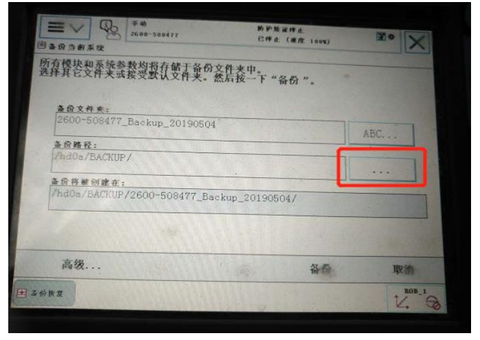 1. 由于安装 689-1 EGM 选项机器人配置会被清空,项目现场先将现场的机器人系统参数备份一下,在示教器正面右下方有个 USB 接口将 U 盘插上。