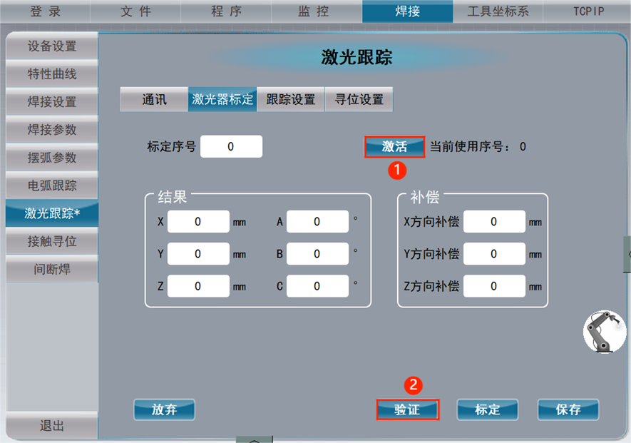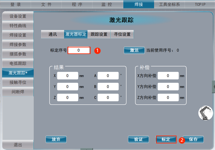 如下图所示,先激活使用的标定的序号,点击验证。