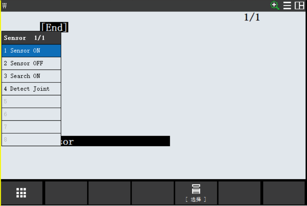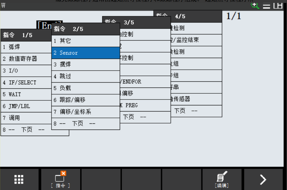 该指令插入方式如下: 在程序编辑界面,按指令>Sensor,里面包括以上三个指令