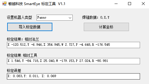 双击SmartEye图标启动调试程序,配置好检测工艺,正确识别所需要的扫描点。
