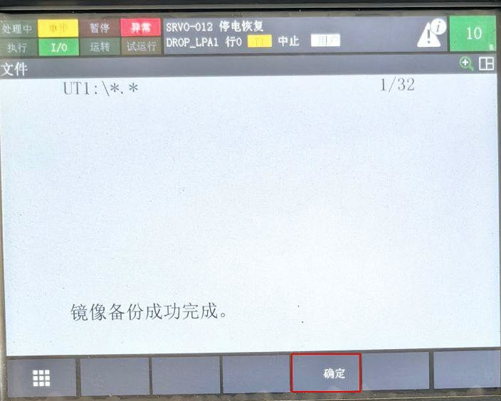 系统会对镜像文件夹中的文件进行检索匹配,如果文件数量匹配,此时选择1进行确认,若不能匹配上很可能是因为不同控制柜中的内存容量不同,此时系统会退出镜像恢复。