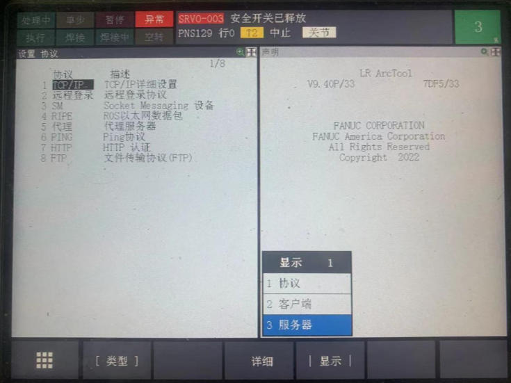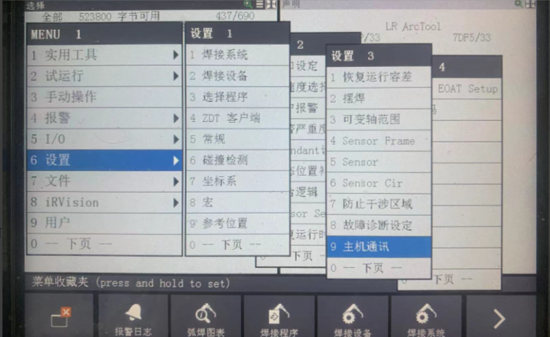 在示教器中依次点击MENU>设置>主机通讯>TCP/IP,进入到主机通讯界面。
