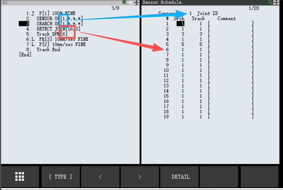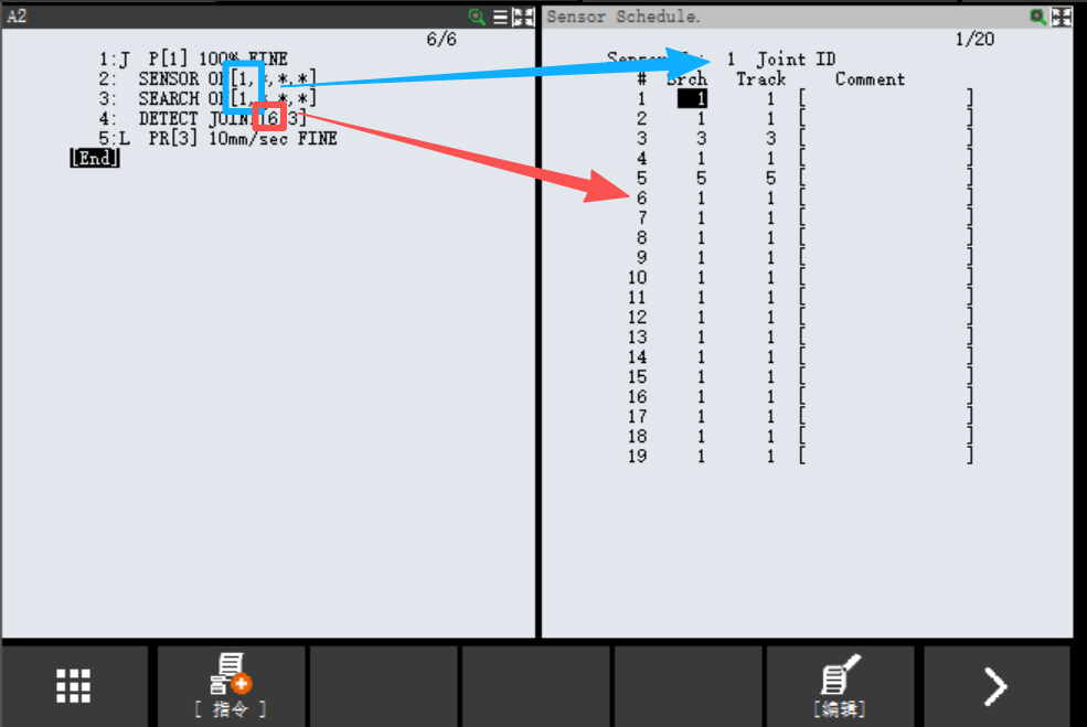 SENSOR ON,并在指令后的括号内将第一个改为1(代表打开1号激光器)。在示教器中按住 SHIFT+FWD 运行该程序。