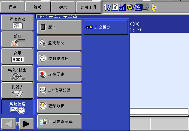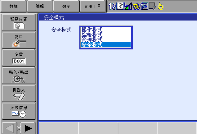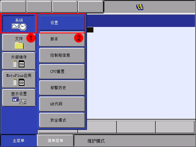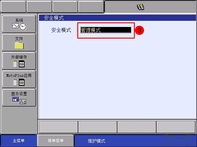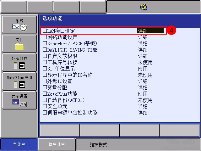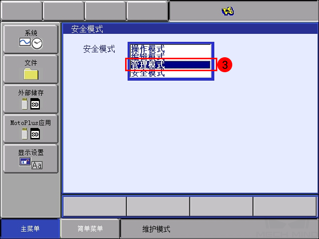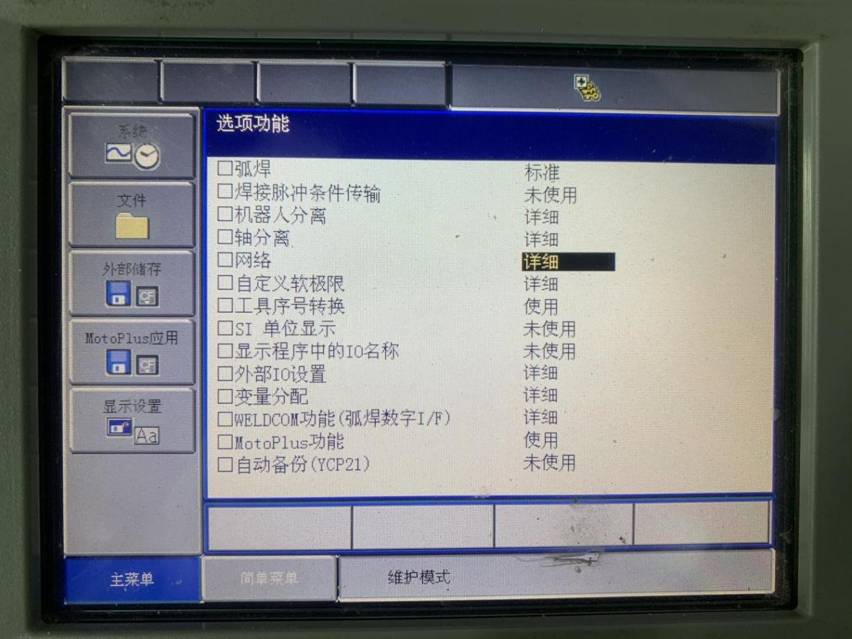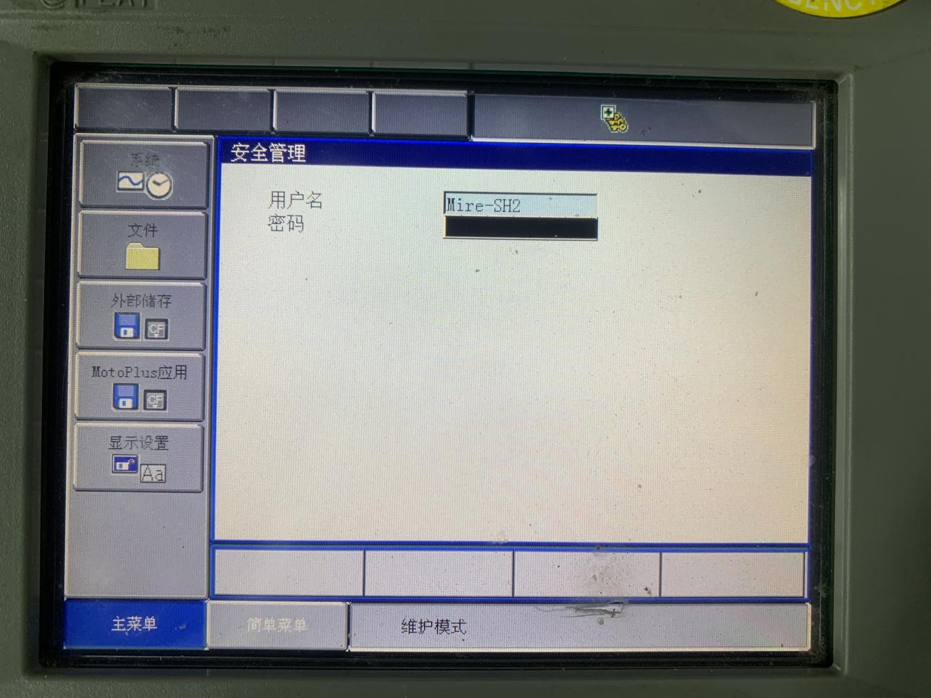 长按主菜单键启动机器人并进入维护模式,将安川加密狗插入示教器USB接口。