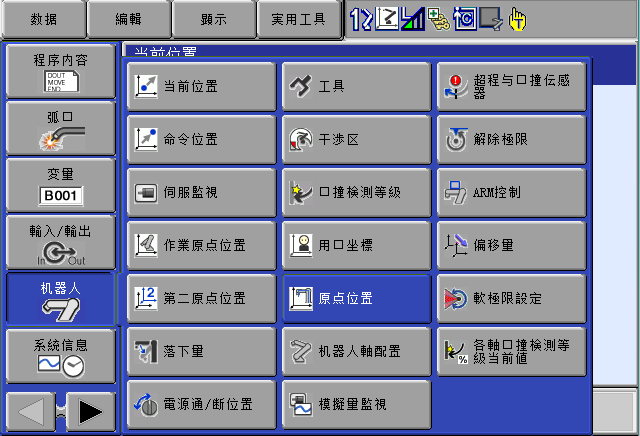 正常开机状态下,进入安全模式,点击机器人,选择原点位置。