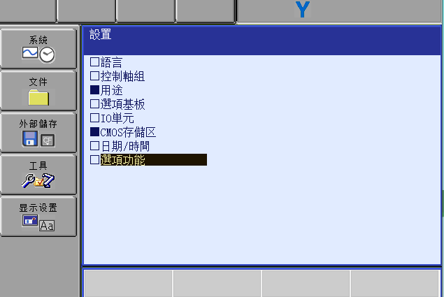 在选项功能中,将中断程序、关联程序、TCP、宏指令命令、工具号转换以及MotoPlus功能修改为使用状态。