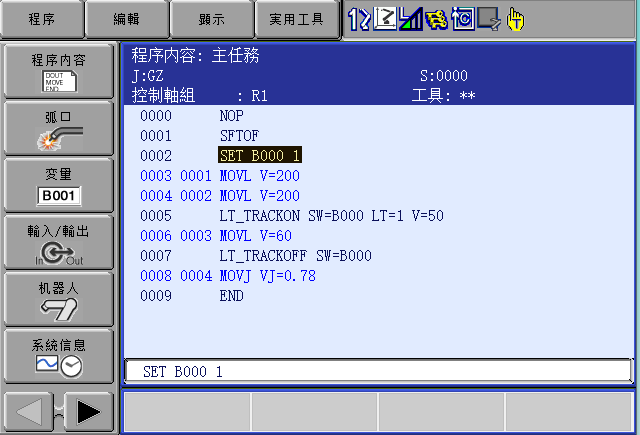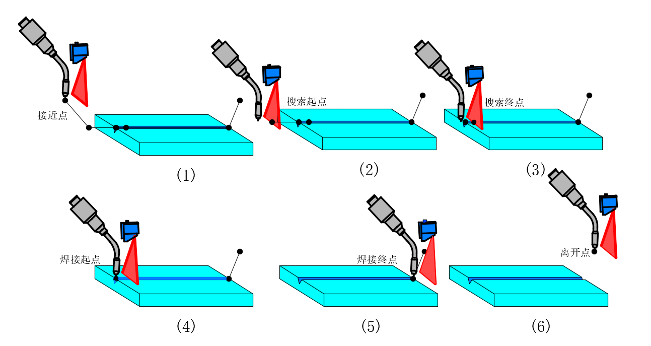 绝对寻位是指直接检测目标点,以检测的目标点为焊接工作点,如下表所示注意,程序中要选择工具号1。如果是其他工具,需重新示教点位。