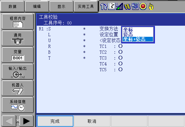 在位置处选择TC1,将机器焊枪头示教到TC1点, 按亮示教器上的修改键,再按
