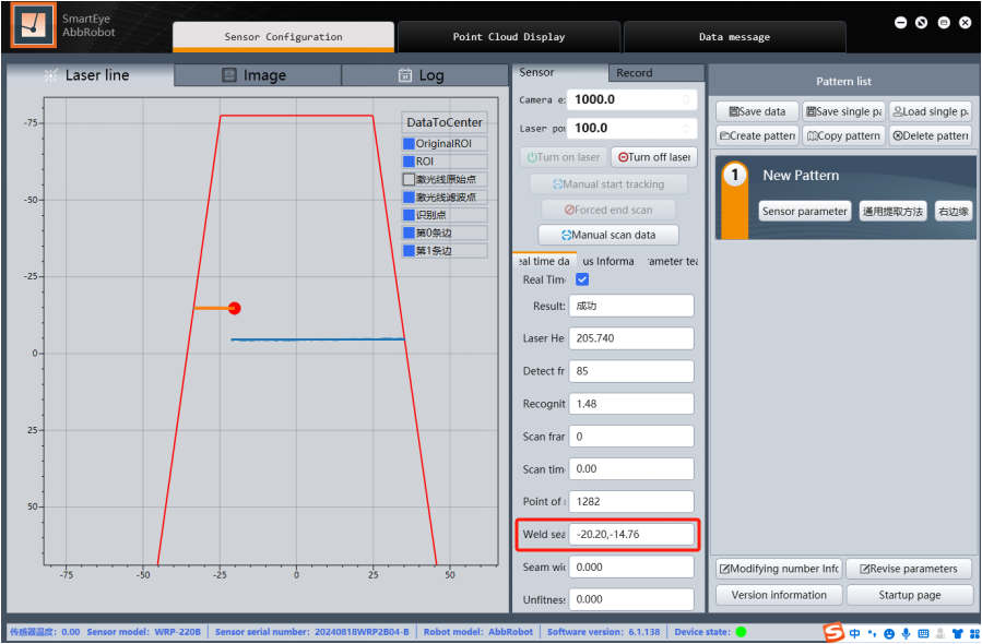 标定验证:将激光线移到一个点上(保证这个激光可以识别),运行单点寻位,查看精度是否达标。