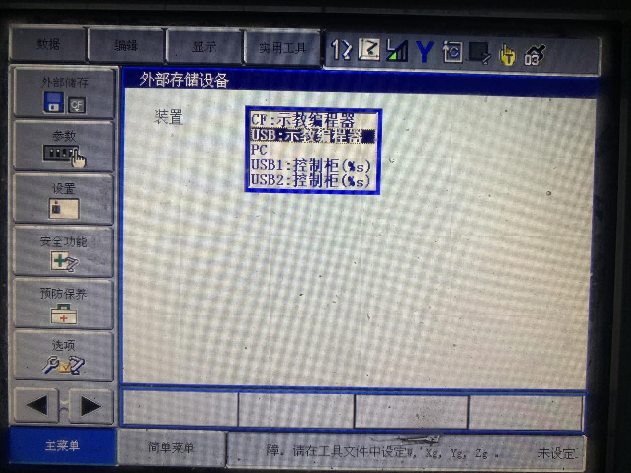将存有备份文件的U盘插入示教器或控制柜的USB接口,将待恢复的文件夹设置为当前操作文件夹。