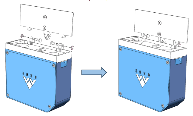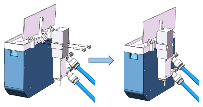 如右图图所示,用两个平头带槽销轴M3x12(含卡簧)连接传感器和气动防护罩保护盖。