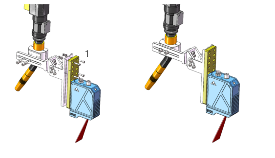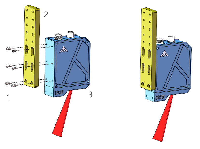 将传感器背面的螺栓孔与绝缘板的键槽对齐,使用内六角螺栓将传感器与绝缘板固定。传感器安装距离请参考上文3.1.1 安装距离确认,以及现场情况综合而定。