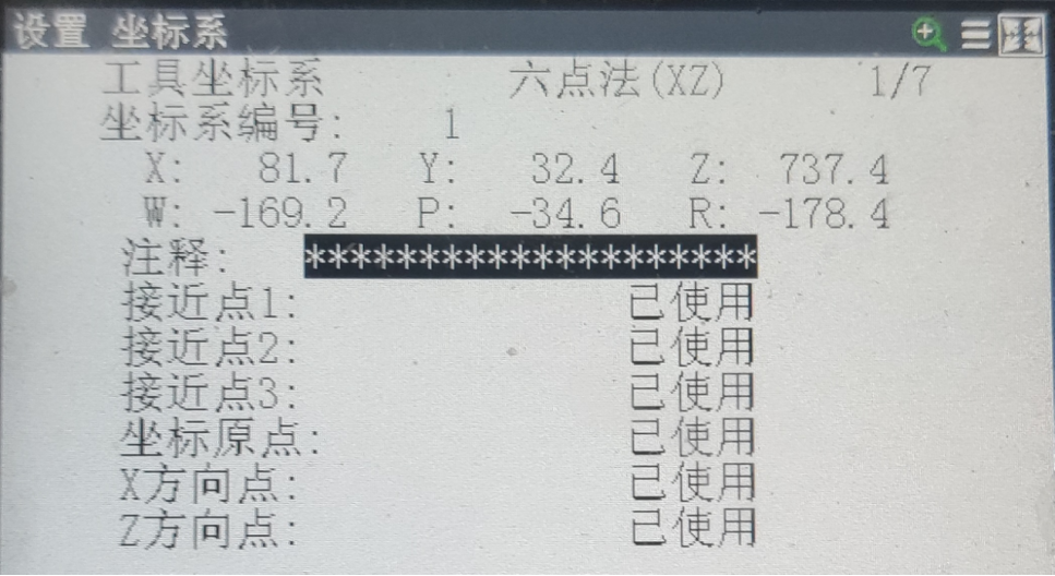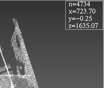 在点云上点对应的点,按T,则显示世界坐标系或用户坐标系下的坐标值XYZ,点云的坐标值和机械手的坐标值在误差范围内时,则认为精度在范围内。