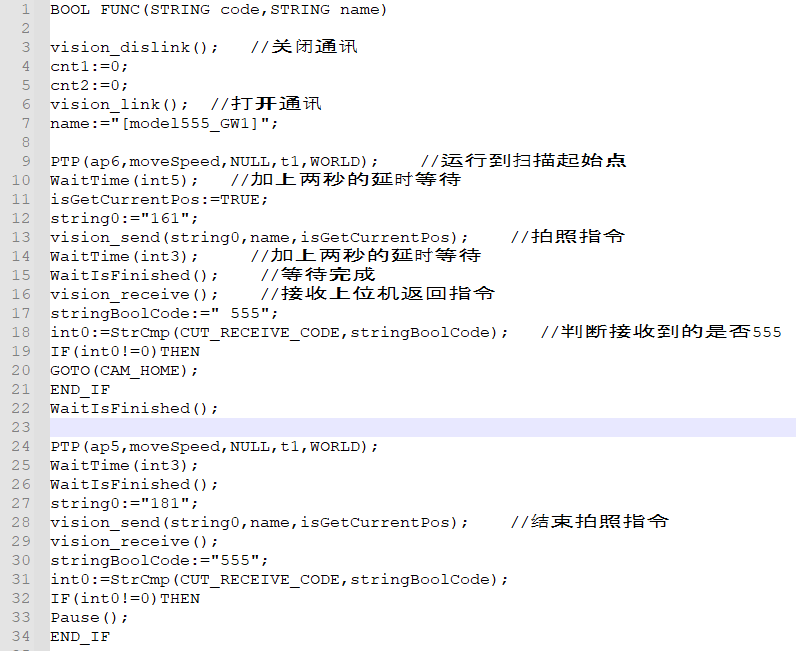 然后在机械手端打开相应的扫描程序,例如LX_CAM4_GW(如下程序为新时达机械手):