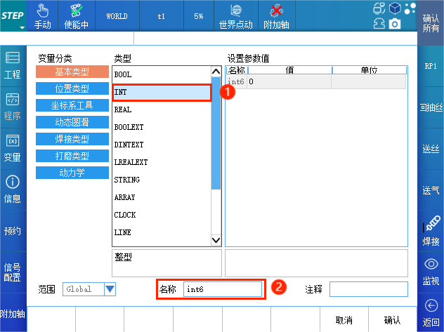 如图所示,在示教器中依次点击变量>全局变量>新建。
