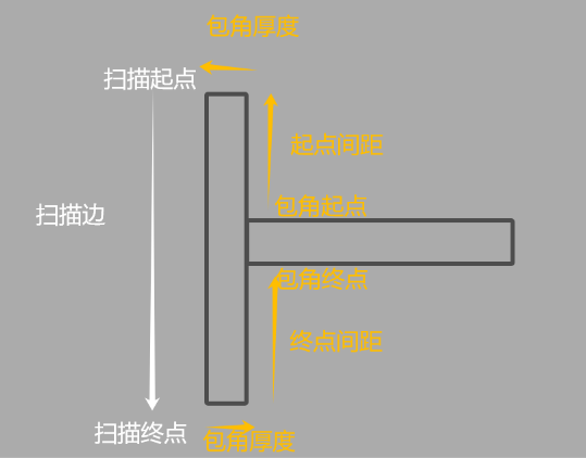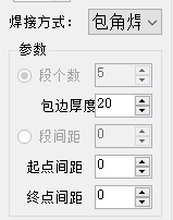 如果要实现左包角右不包角,可将左包角包边厚度设大一些。为实现包角参数自动匹配,需要将右包角包边厚度设为0.1,如果设置成0则无法实现自动匹配。当包边厚度小于1时,先扫后焊算法不会将其识别为包角焊。