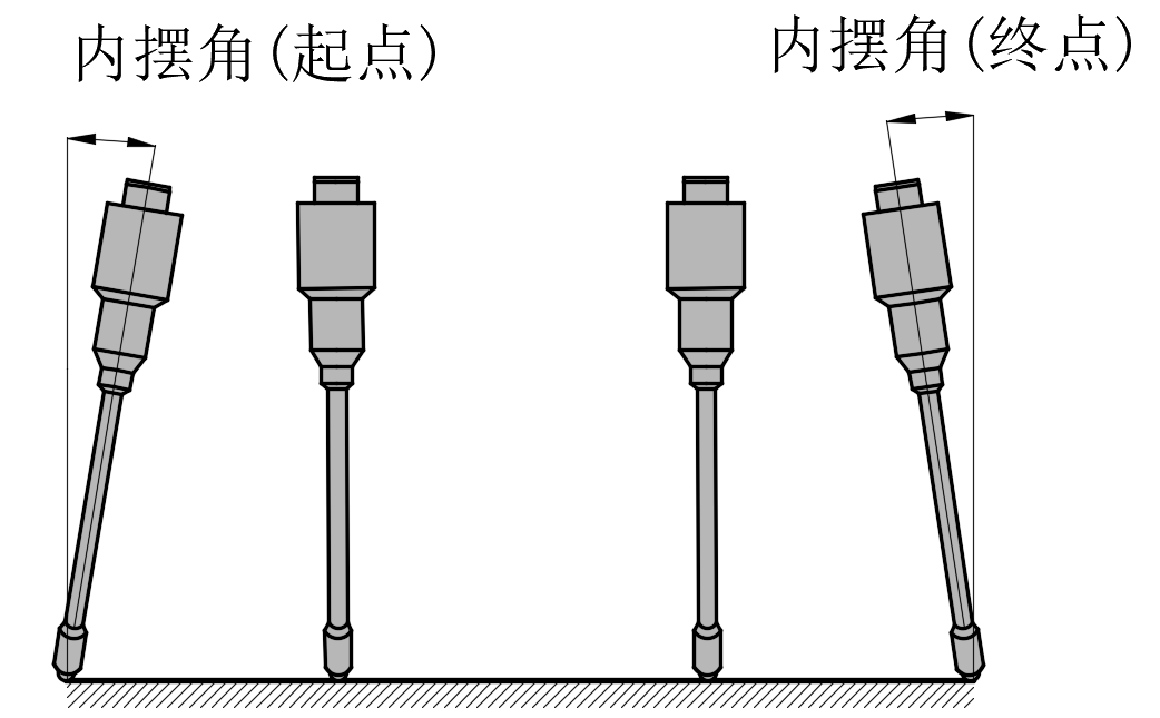 为避开两侧挡板,需要设置起点内旋角和终点内旋角,内旋角通常设置为30°-45°。如果两端无挡板,则起点内旋角和终点内旋角均为0。
