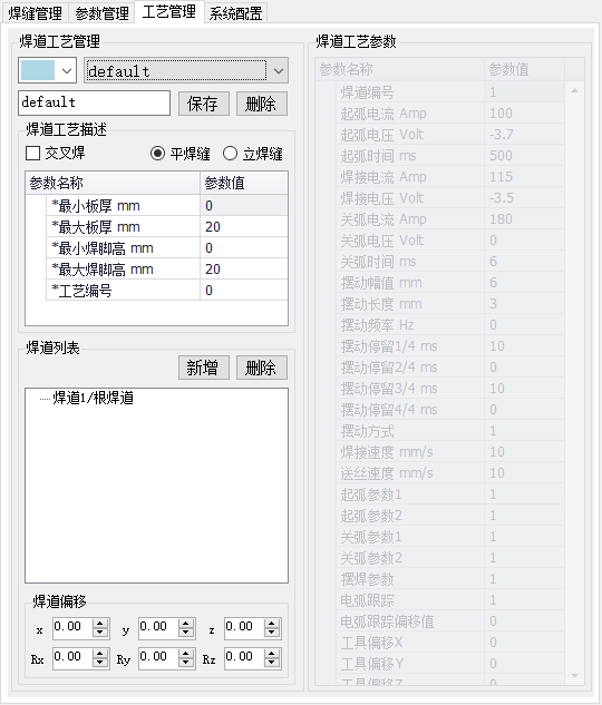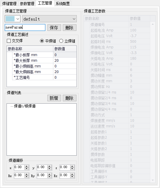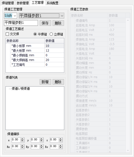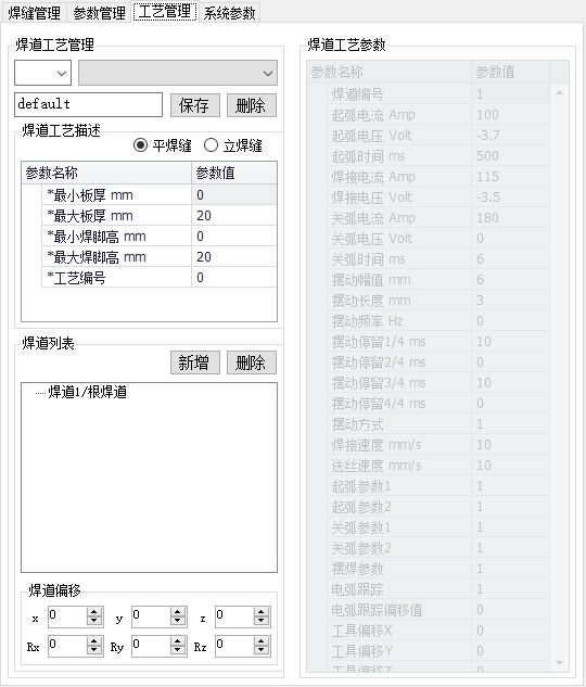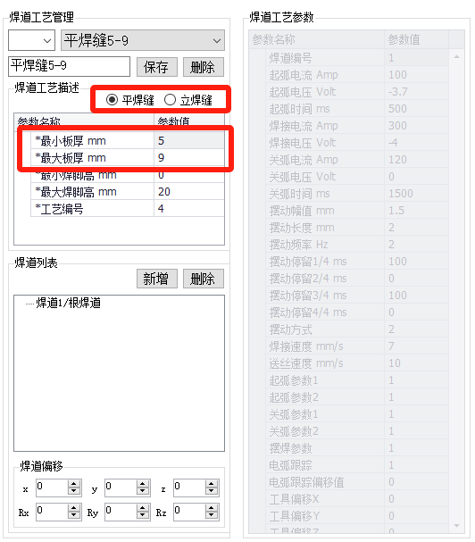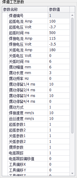 先点焊道名称,然后设置该焊道的工艺参数和焊道偏移。