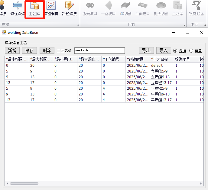 焊道列表点“新增”,添加焊道。
