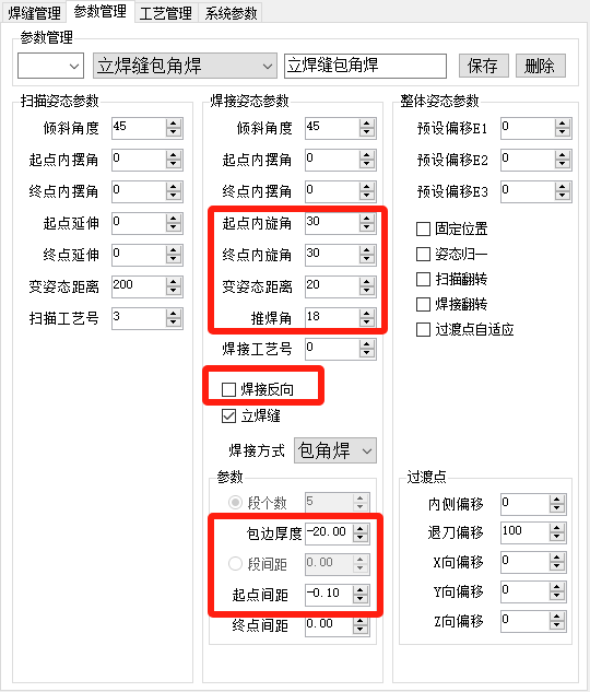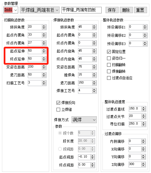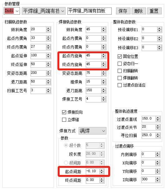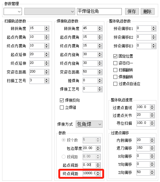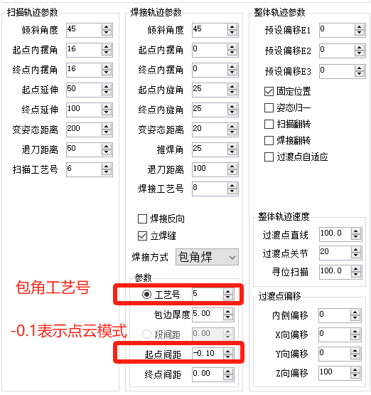 注意:平焊缝和立焊缝都需要设置起点间距-0.1以开启点云模式。