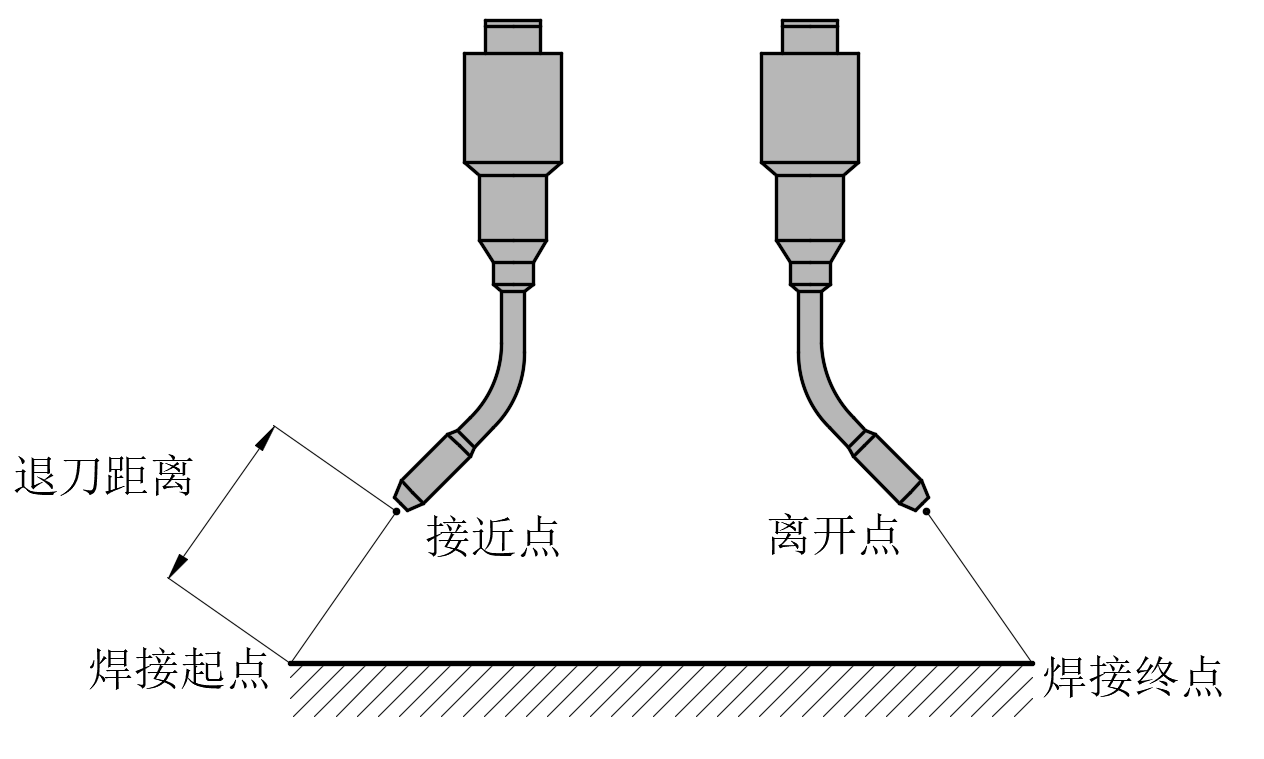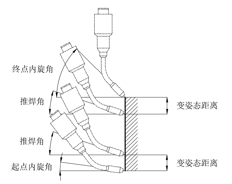 焊接开始段和结束段变姿态的距离。焊接变姿态距离可以设置短一些,常用:50~100mm。