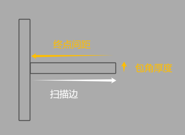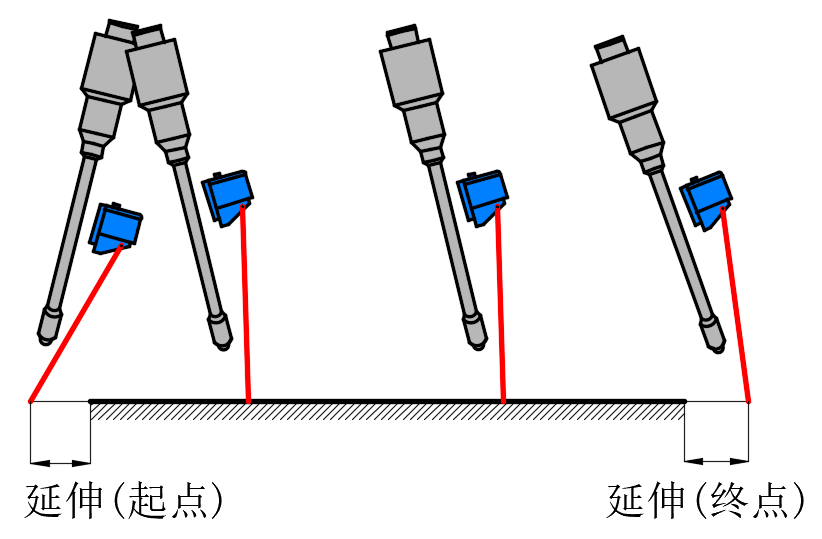 为避免粗定位误差造成的扫不到起点或终点的情况,需要将扫描起点终点延长。