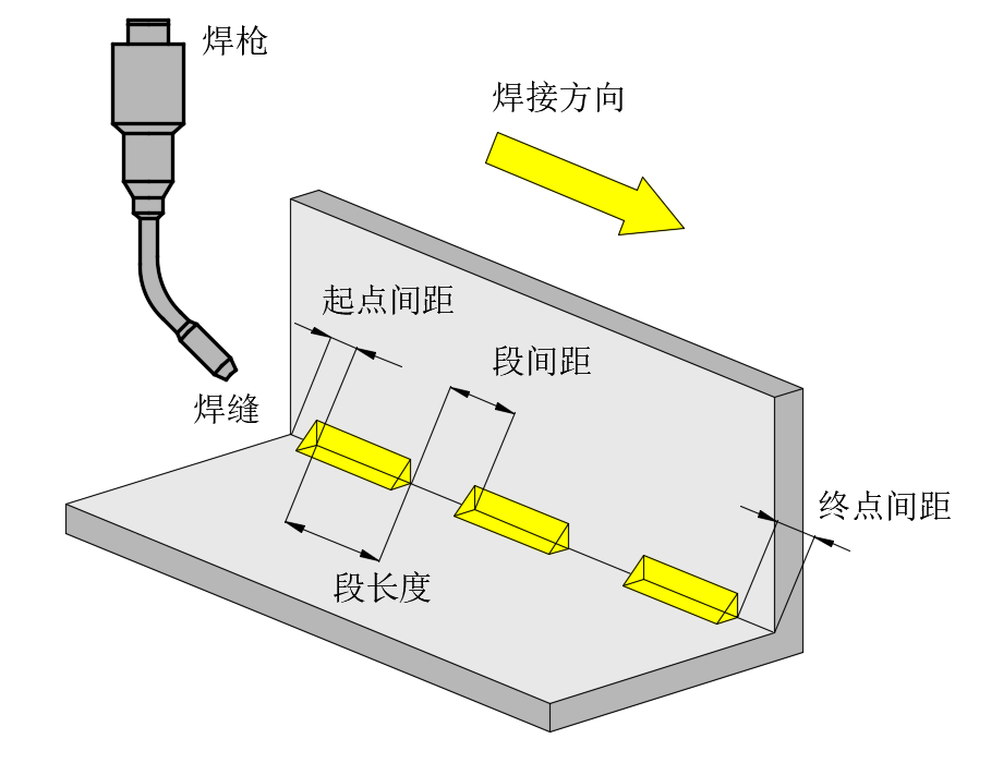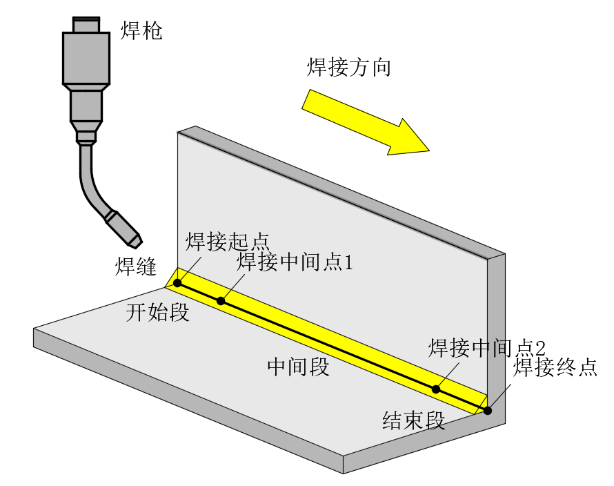 一条焊缝由四个点组成:焊接起点、焊接中间点1、焊接中间点2、焊接终点。