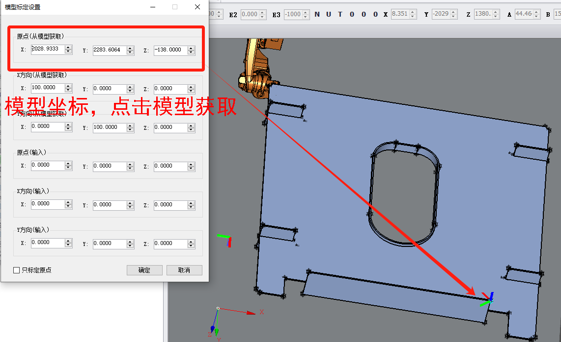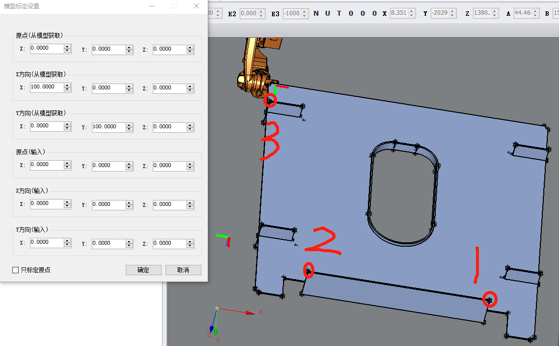 输入完成后,点“确定”,工件会自动摆放到标定位置。