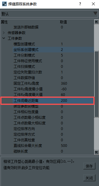 修改工件参数中的工件最近距离,开启多工件定位功能。