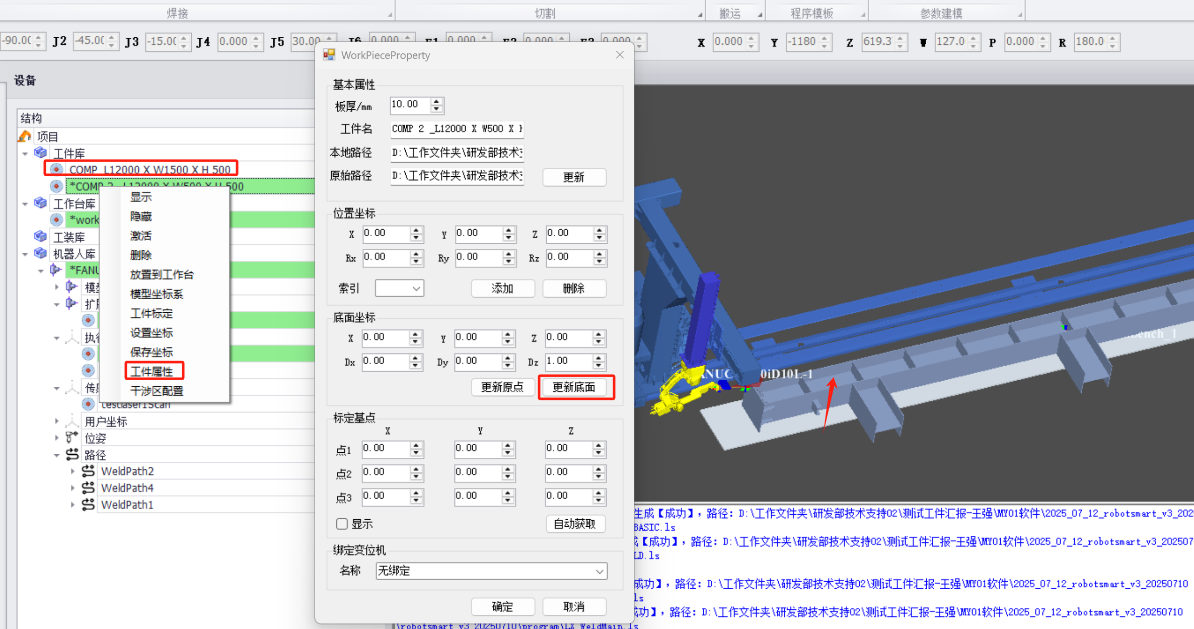 由于现场环境可能出现重新标定tcp或者外部轴范围变更,因此需要检查并更新tcp和外部轴数据。