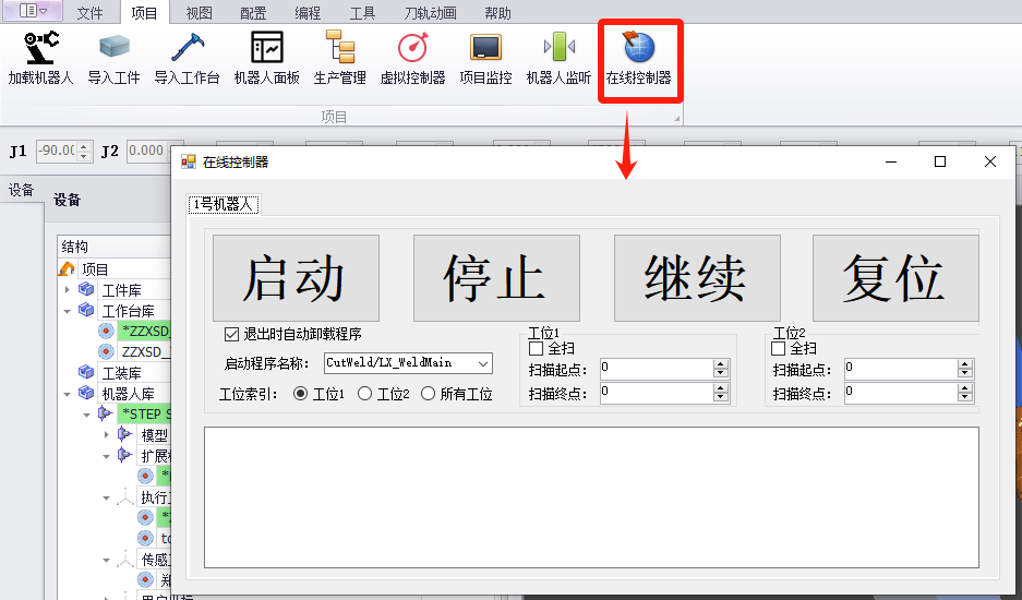 点“项目”——“在线控制器”,弹出在线控制器界面。