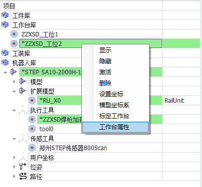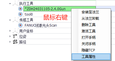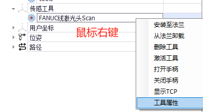 在线激光头名称位置点鼠标右键,点“工具属性”。