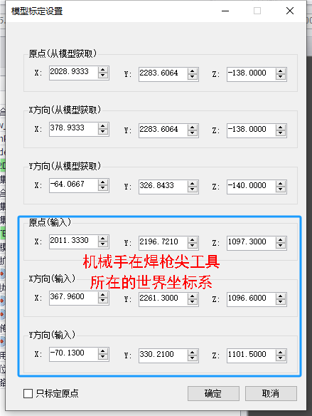 蓝色框中数值可以微调焊枪尖与TCP的相对位置。