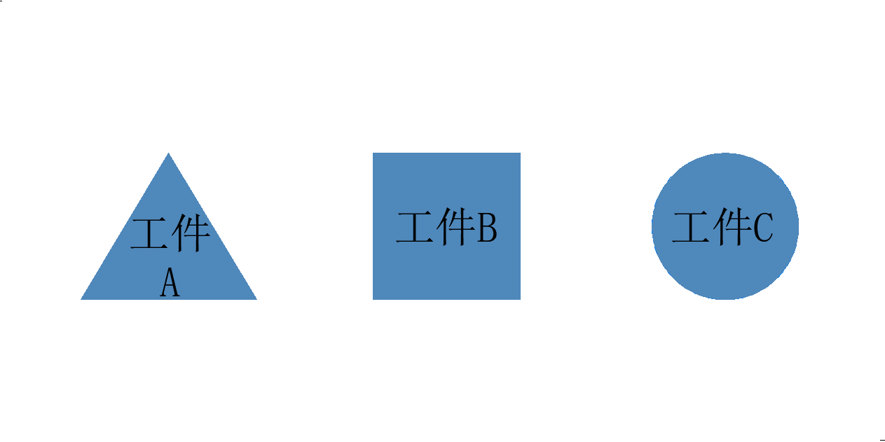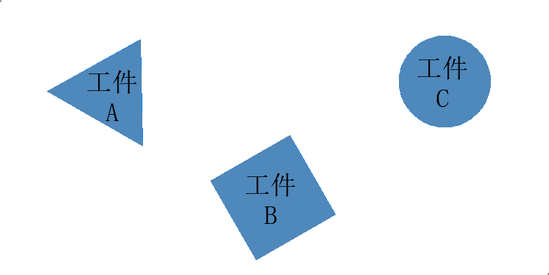 离线软件生成工件对应的点云(pcd)、位姿(pose)和列表名称(list)文件。其中,ABC点云文件分别为_A_GW1.pcd、_B_GW1.pcd和_C_GW1.pcd,位姿文件分别为_A_GW1.pose、_B_GW1.pose和_C_GW1.pose,列表文件为_list_GW1.list,其中文件内容为三个工件模型的名称_A_GW1、_B_GW1和_C_GW1。