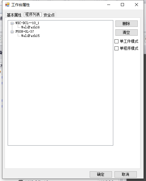 单程序模式表示每个工件只记录一个程序,新程序名称会覆盖原来程序名称。程序生成后,工件名和程序名会记录到对应工位的程序列表中。